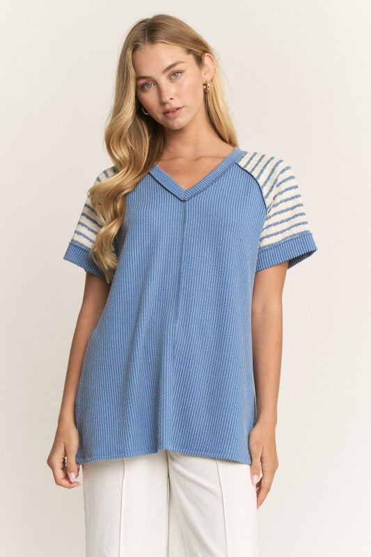 Denim Ribbed Short Sleeve