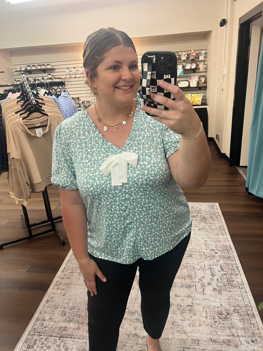 Sage Floral Bow Blouse