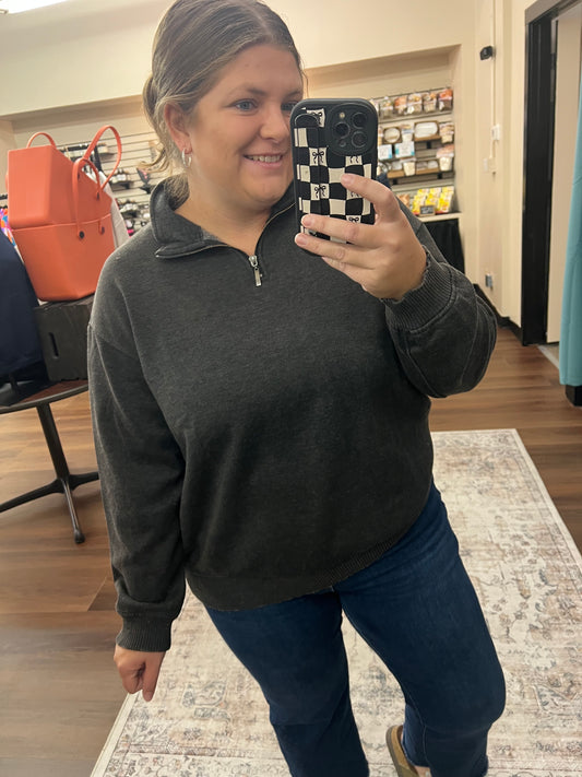 Acid Wash Half Zip Pullover - 3 Colors