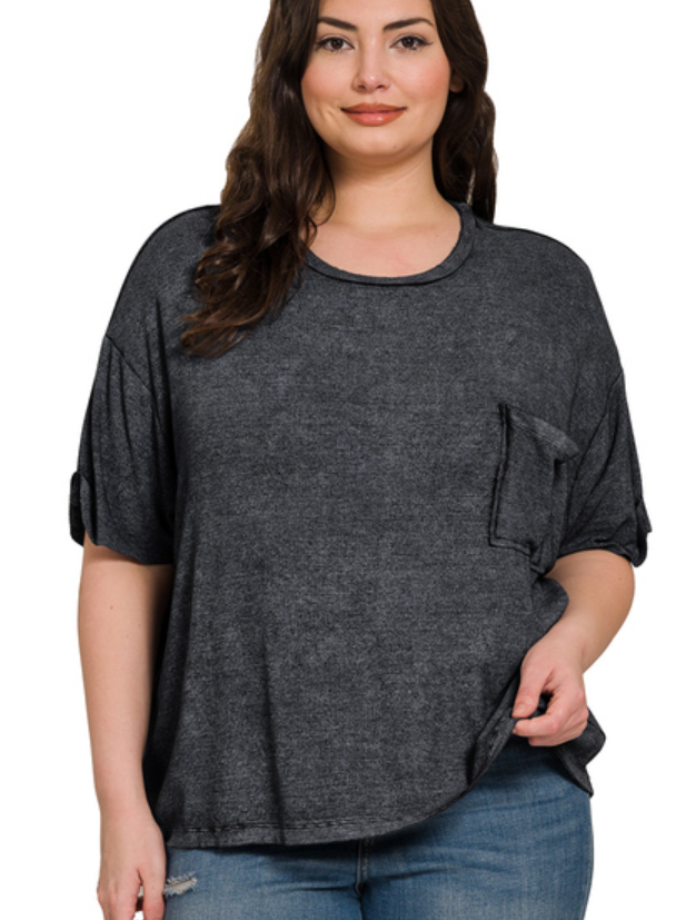 This washed, ribbed fabric is all the rage right now, and for good reason! You’ll absolutely fall in love with how stretchy, bouncy, and insanely comfortable this tee is. It’s quickly become my new go-to for spring and summer, thanks to its lightweight feel and flattering fit. The length is perfect for pairing with your favorite shorts, making it the ideal choice for warm-weather days. Plus, the colors are absolutely stunning—vibrant yet easy to wear, making this tee a must-have for your seasonal wardrobe!
