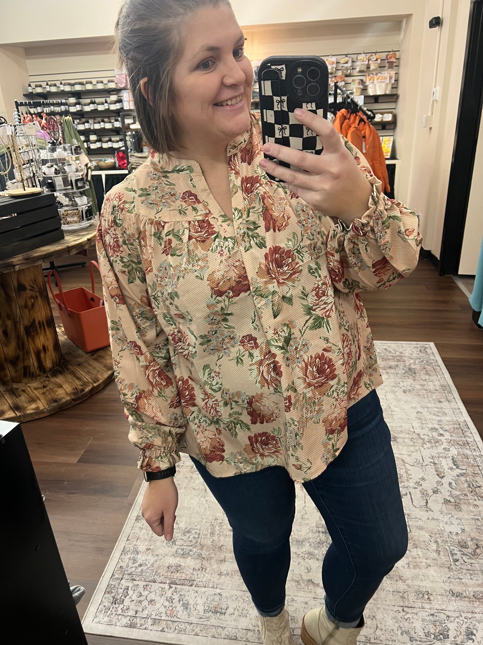 Whether you need a new work top or a fun festive top for the holiday parties, this one just maybe it! The red and green florals are the perfect pop of holiday spirit while still being neutral enough to wear for multiple season!