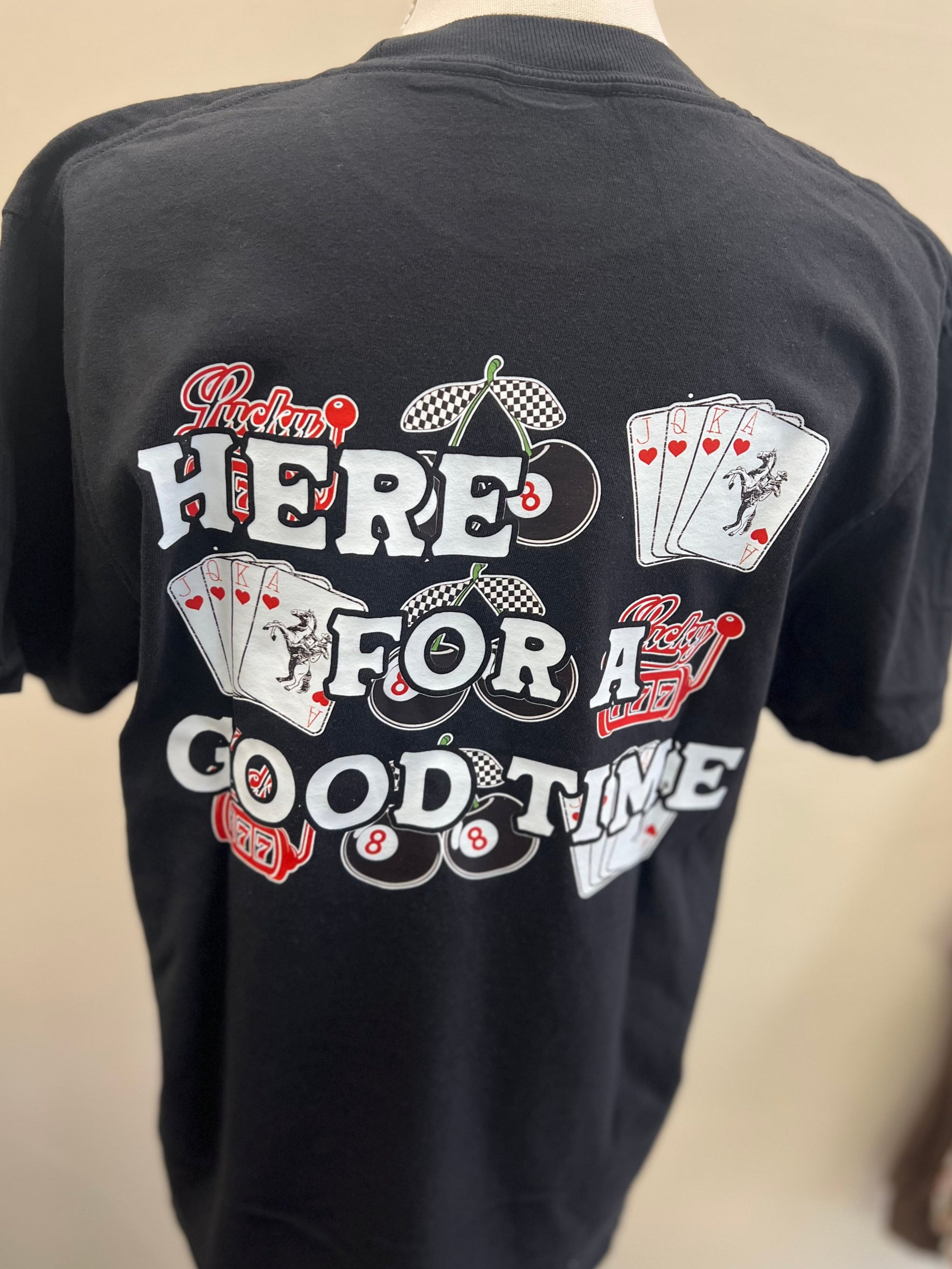 Another fun graphic to add to your wardrobe! Whether you like to throw a $20 in the slots, bet your hand in a game of blackjack, or just have a good time... this tee is for you!