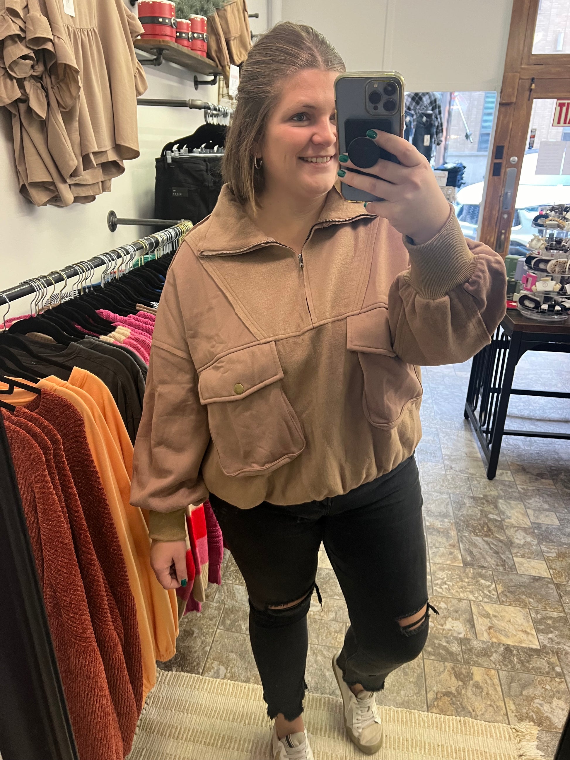 This pull over is a cozy dream! The different fabrics and textures make this such a unique piece and its heavier weight makes it so warm and cozy! It's a great piece to spice up your everyday sweatshirt look or a great Christmas gift!